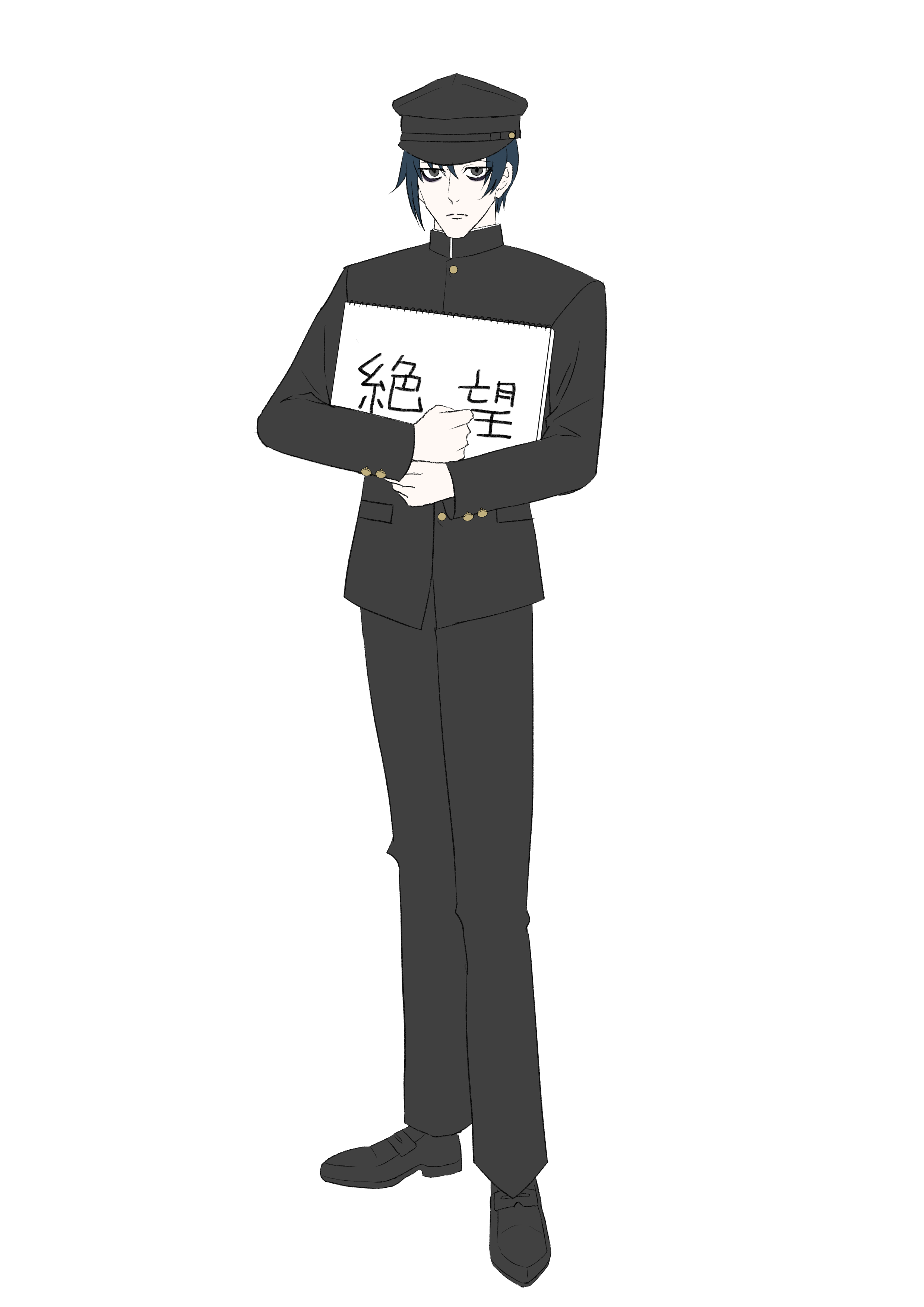 音無(オトナシ) 『どうせ僕なんて居ない方がいいと思われてるし心の奥ではみんな死ねと思っているんだろうどいつもこいつも大嫌いだ』 喋り方が気持ち悪いと言われて虐められたのがトラウマで、以降人前で喋ることが出来ず、スケッチブックを介して筆談する。 自意識過剰で自己嫌悪が強く、常に誰かに非難されていると勝手に落ち込み、勝手に憂鬱になっている。